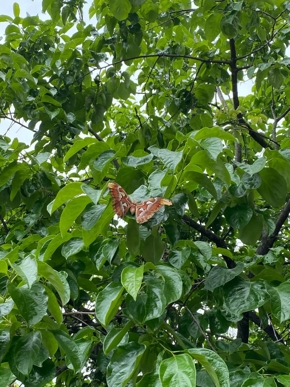 “当时它停在一棵很低的树上,我们无意中发现,当时还以为是蛇,仔细一看才发现是一只巨型的蝴蝶。”4月12日,梯面镇五联村村民到五联村巡查森林防火时,在村的山边树上发现了一只硕大蝴蝶,两个形似蛇头的翅膀令人称奇,故拍下了蝴蝶的照片。