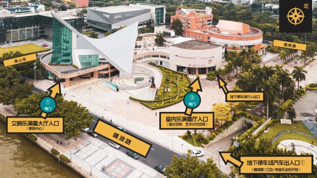 如上图所示,右下角是星海音乐厅的地下停车场入口,前来参加音乐会的观众,凭当天门票可免费停放。PS:停车场仅在演出时间开放,演出结束后请尽快开走哦。