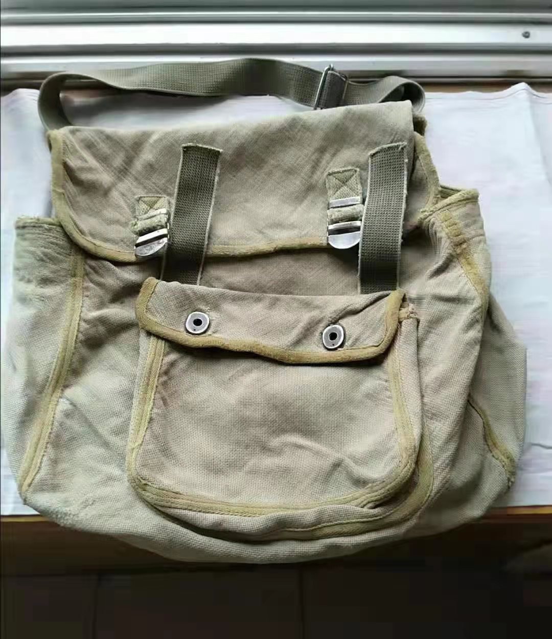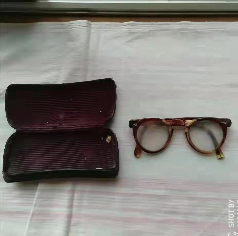 王宏女士说,另一件黄绿色的帆布挎包,是“我父亲用过的包。听他说过,(是)在(19)46年集宁战役的缴获品。”此外还有他用过的第一副老花镜以及第一部收音机。
