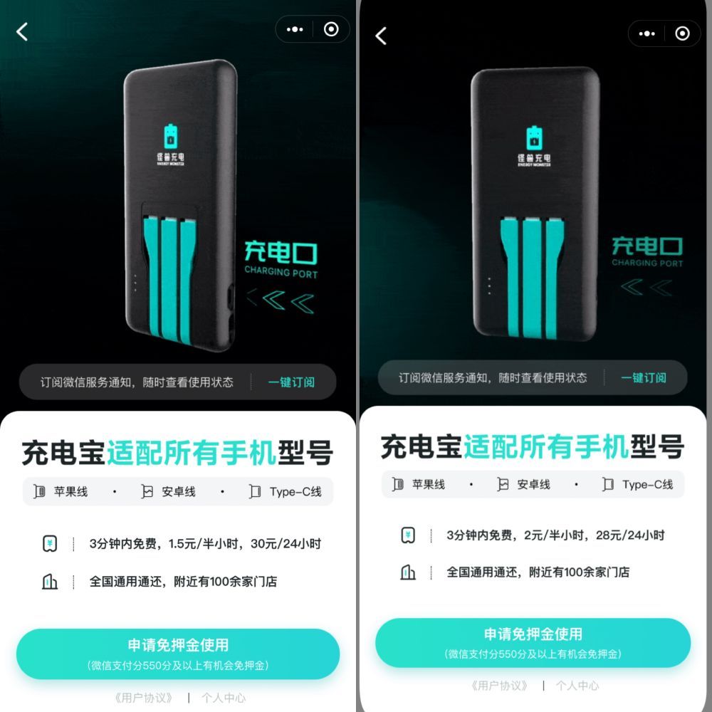 同一品牌的共享充电宝在不同场景收费标准不一样