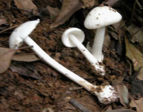 据介绍,广东常见剧毒蘑菇种类有白毒伞(致命鹅膏)、灰花纹鹅膏、黄盖鹅膏白色变种、粘盖包脚菇、簇生沿丝伞(簇生黄韧伞)。在广东地区,导致中毒人数最多的两种蘑菇分别是白毒伞(致命鹅膏)和铅绿褶菇,其中白毒伞又是毒性最强的。白毒伞的白色菌体幼时卵形,后菌盖展开成伞状。常在黧蒴树树荫下群生或散生,分布在广州、清远、肇庆等地,大量生长于春季温暖多雨的3~4月,5~7月也少量出现。
