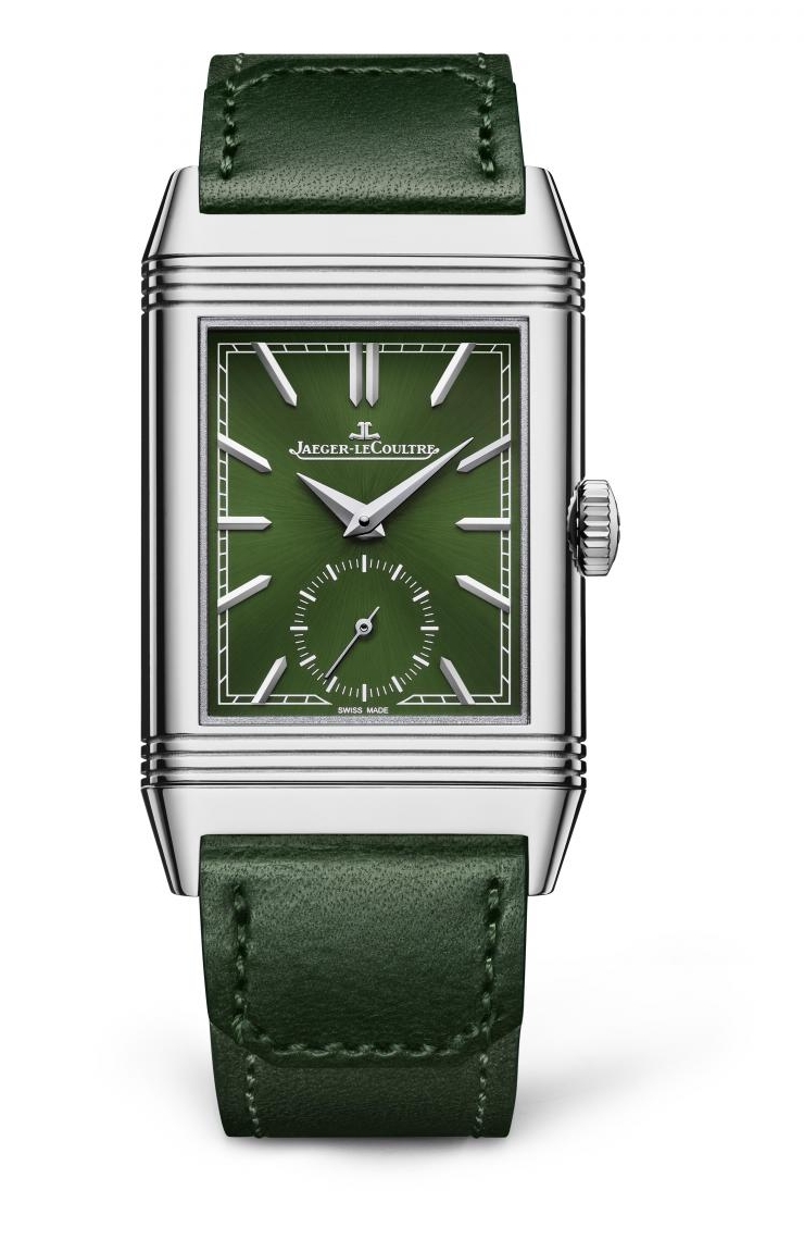 为了致敬REVERSO系列诞生九十周年,积家在表展全方位对翻转系列进行了展示。虽然九十周年的特别版令人印象深刻,但这只绿色版却非常吸引眼球。它呼应了Reverso翻转系列腕表问世早期的色彩搭配,汇集了Reverso Tribute翻转系列腕表所有标志性设计元素,色泽浓郁的太阳放射状饰纹漆面表盘和相衬的皮制表带,令人想起汝山谷中环抱积家大工坊的青翠松林。