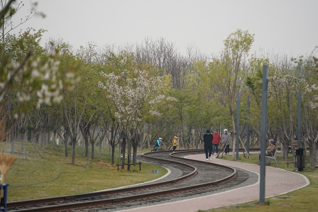 工作日的早晨,还没到周末,位于廊坊大厂回族自治县的潮白河樱花公园内就已是游人如织。樱花树下拍照,草坪上遛狗,广场上扭起秧歌,好不轻松自在。