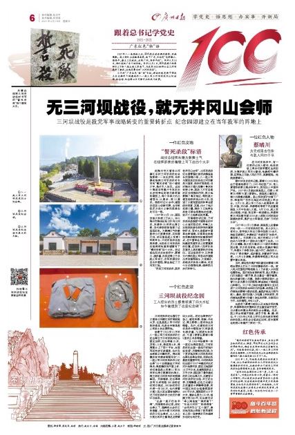 刘南海告诉记者,三河坝战役是探索中国革命的中心从城市到农村,军事上从正规战到游击战转变的重要转折点,同时又是探索中国革命新道路、实现革命战略和军事战略转变的重要转折点,在中国革命史和中国人民解放军建军史上有着重要的位置,在党和人民军队的发展史上具有重要的历史地位。在这场战役中,以朱德为代表的起义军官兵所展现出来的理想信念、大局意识、战略战术和战斗精神,时至今日仍熠熠生辉,值得我们永怀和学习。