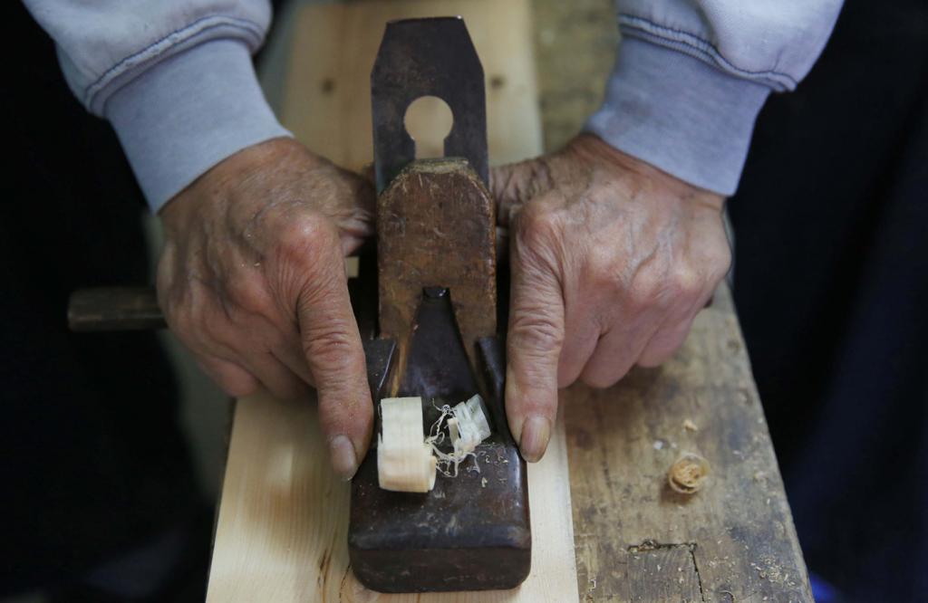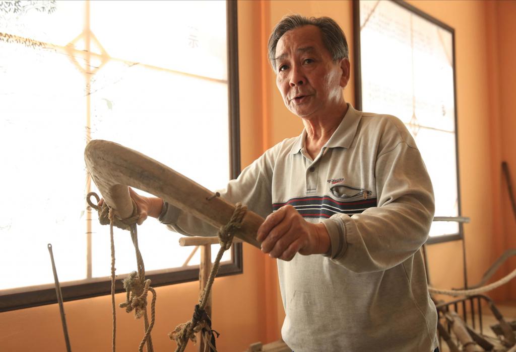 宝安区松岗街道有一位文业成老人,今年 76 岁,人称文叔。生于 1945 年的文叔从 16 岁开始学习制作木器农具,已经做了整整 60 年了。从20世纪六十年代初,文叔便在松岗农具厂任制作技师。