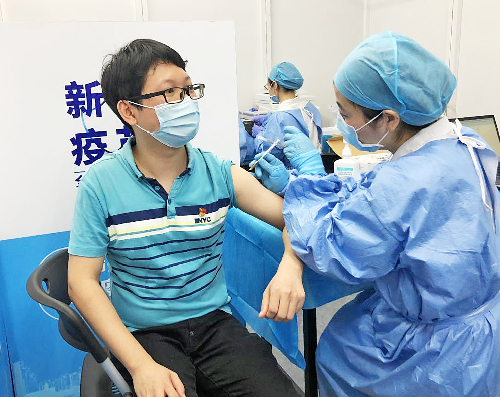 石牌村村民池先生正接种新冠肺炎疫苗。(摄影:池炳绍)