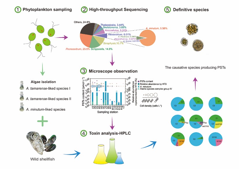 近日,中国科学院南海海洋研究所热带海洋生物资源与生态重点实验室张黎研究员团队主导,联合深圳大学、厦门大学和暨南大学等团队,精准溯源了我国南海大亚湾海域中麻痹性贝类毒素的生物来源。相关研究成果“Identifying the source organisms producing paralytic shellfish toxins in a subtropical bay in the South China Sea”发表于环境科学期刊《环境科学与技术》(Environmental Science & Technology 2021, 55: 3124-3135)。