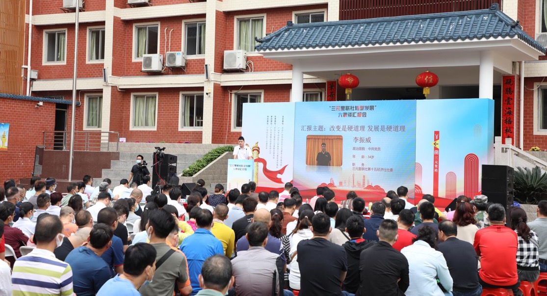 今日的汇报会现场,16位演讲者悉数亮相,一展风采。他们中既有经验丰富的“老姜”,也有三十出头的“牛犊”,大家围绕“三元里联社转型发展”的主题,纷纷从强化党建引领,产业转型升级、城市更新、人才队伍储备、人居环境改善、社会治理创新、历史文化传承等多个方面,展开深入探讨,积极建言献策。不少好点子、新招数博得现场村民们的热烈掌声。