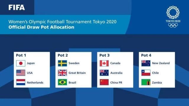 国际足联此前已经拟定好了东京奥运会女足赛事的相关分组原则,参加奥运女足比赛的12支球队将分成四个档次,分别抽入E、F、G三个小组,分档依据就是4月16日这一期的女足世界排名,其中由英格兰、苏格兰、威尔士和北爱尔兰四个足总联合组队的英国队将以英格兰女足的排名为准。