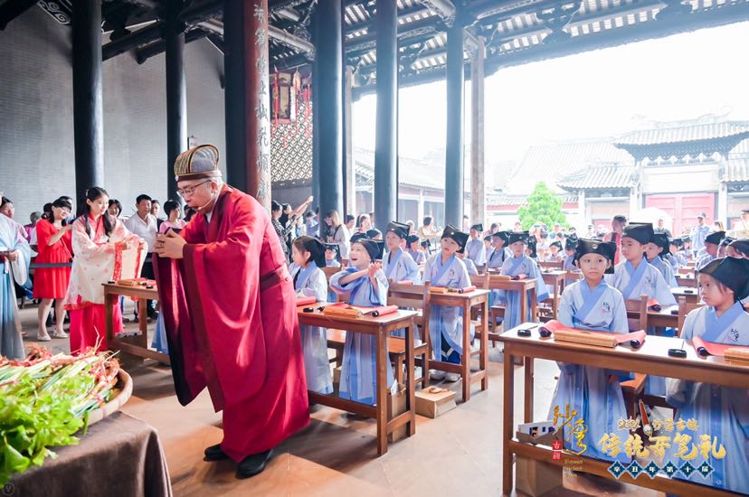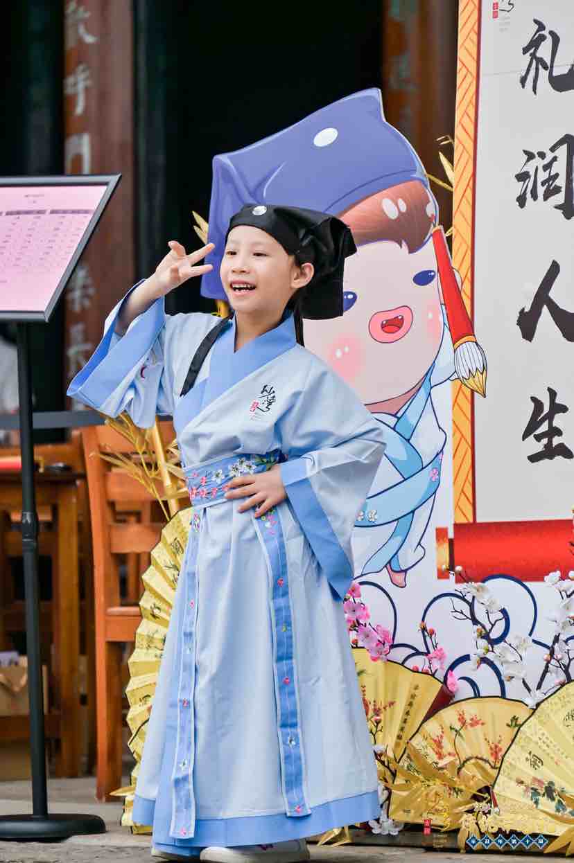 活动中,在司礼官梁谋先生的一句“正衣冠”,沙湾古镇辛丑年第十届传统开笔礼的首场活动就正式开始了。