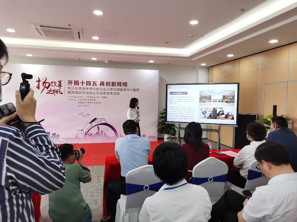 4月20日,南沙区港澳青年创新创业法律支援服务中心揭牌暨跨境远程视频公证成功发布活动在南沙举行。