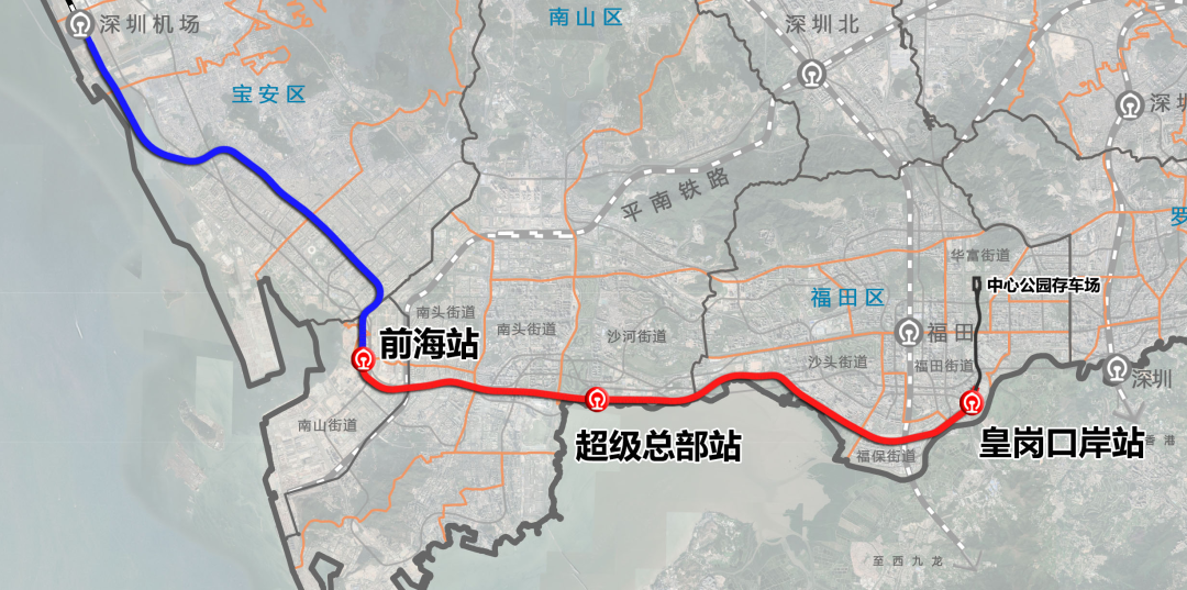 ➤通过穗莞深城际,前海和皇岗口岸可经广深铁路达广州东站,经佛莞城际及琶洲支线达琶洲站,经新白广城际达白云机场、广州北站。