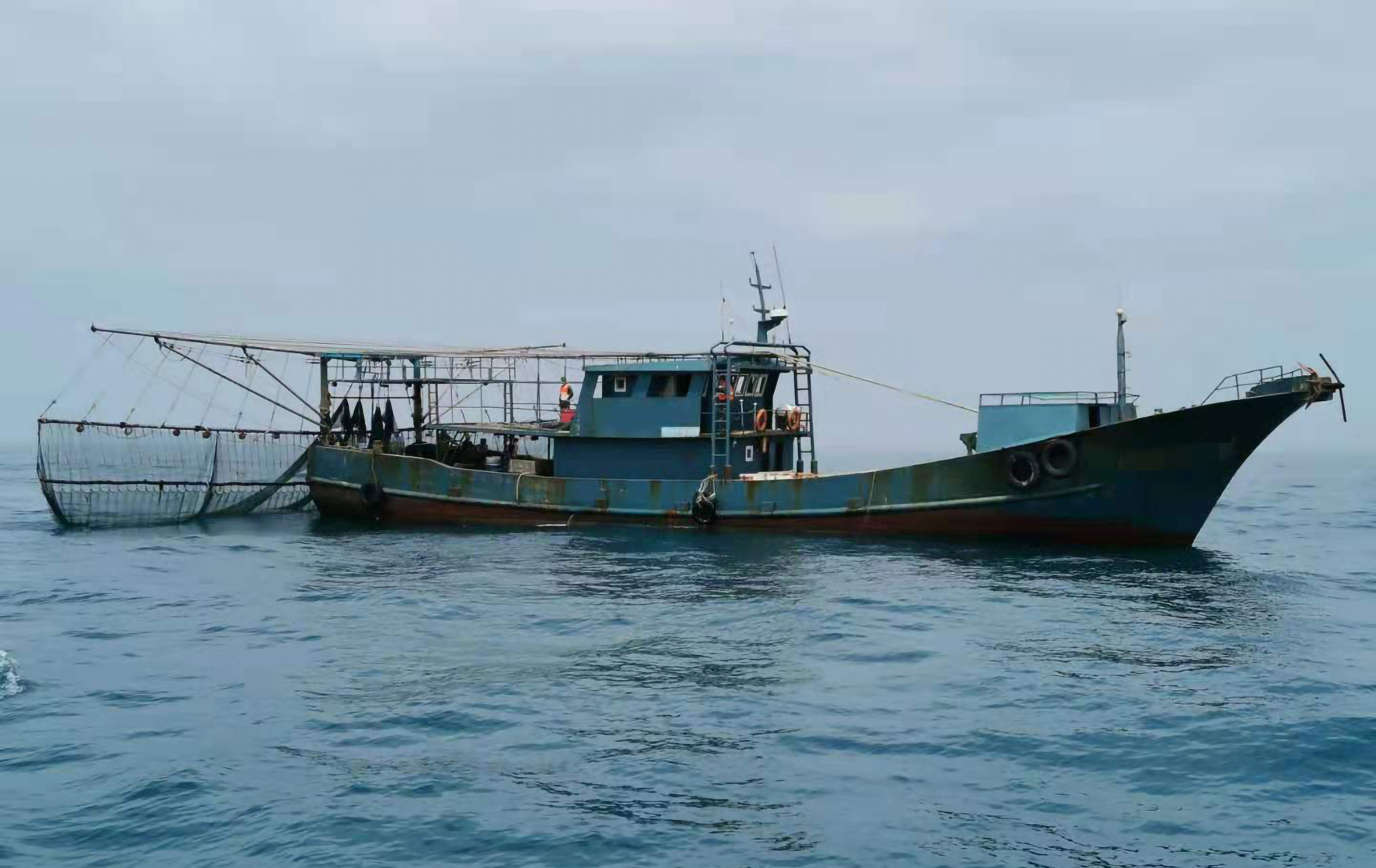 4月12日上午10时45分许,该局海警执法艇在汕头南澎海域附近编队巡逻时,发现有两艘渔船疑似正在进行电拖网捕鱼作业,海警执法艇编队立即前往缉查,对两艘嫌疑船只进行海上围堵,执法人员对嫌疑船只喊话警告,喝令嫌疑船船员立即停船停止作业,并迅速分别对两艘嫌疑船只进行靠帮登临。