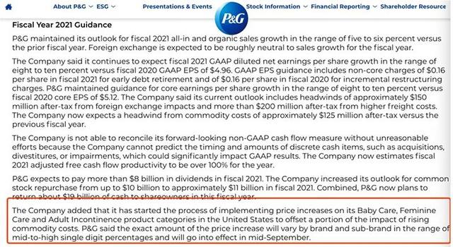 宝洁公司称,其价格上涨将因品牌而异,但涨幅将在中至高个位数的范围内。该公司还在评估原材料成本以及外汇对其他产品类别的影响,这意味着公司产品价格涨幅会更大。而未来如果确认产品价格上涨,宝洁计划通过提高消费者对其产品价值的认知以及推出新的或升级产品来保持市场份额。