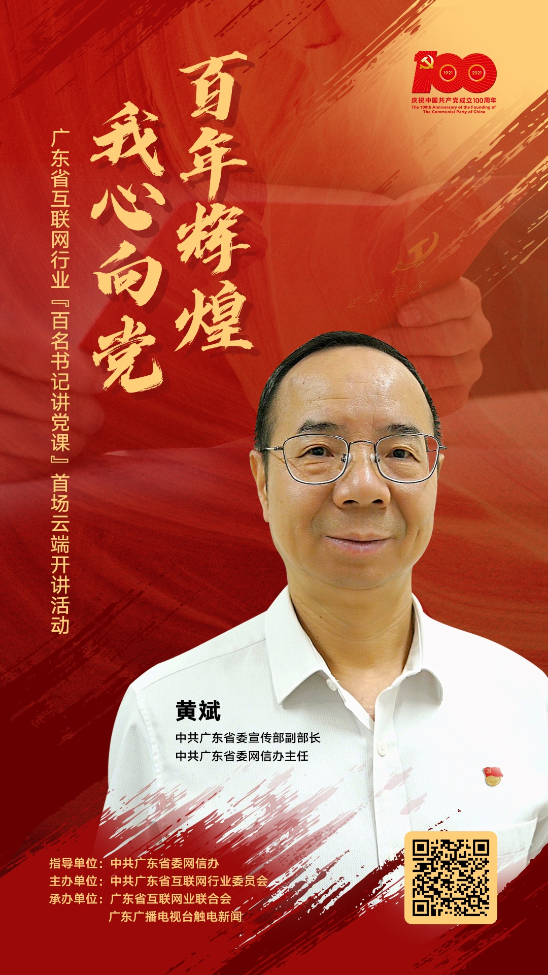 广东省互联网行业如何讲好“红色故事”,如何借助互联网让红色基因代代相传?如何将红色故事讲给年轻人听?如何给互联网党建插上信息化“翅膀”?……省委网信办主任黄斌将带我们从百年党史中学习宝贵经验,感悟互联网行业的初心使命。