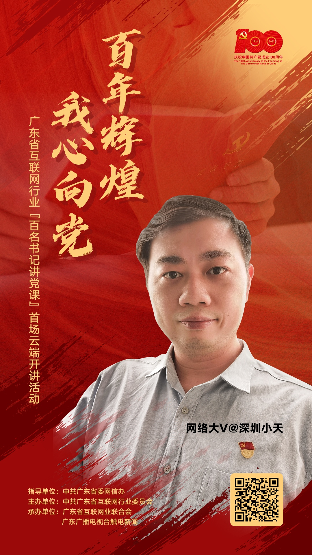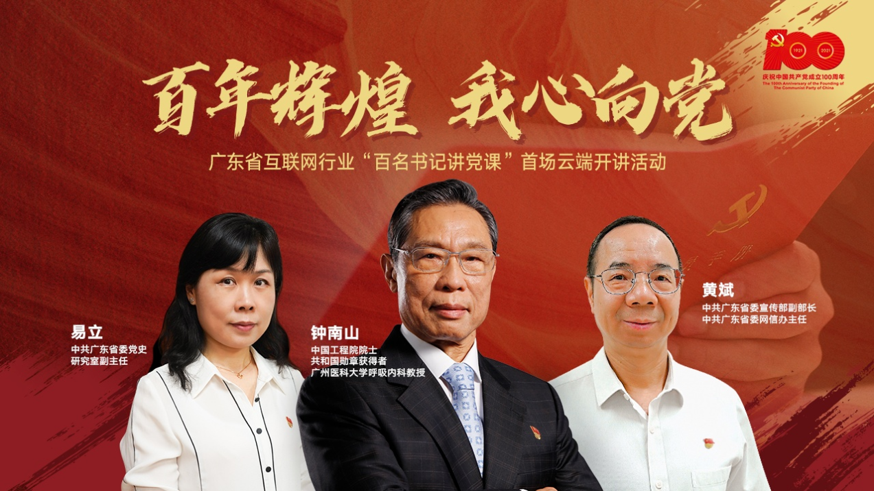 为隆重庆祝中国共产党成立100周年,在中共广东省委网信办的指导下,省互联网行业党委策划了“百年辉煌 我心向党”——广东省互联网行业 “百名书记讲党课”首场云端开讲活动,倾心书写百年大党的风华正茂,倾情展现广东互联网人的精神风貌,在网络空间凝聚起奋斗百年路、启航新征程的强大精神力量。