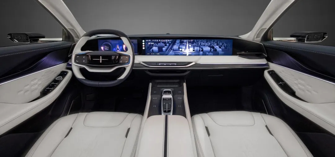 为了给主副驾乘客创造平等均衡的用车环境,Lincoln Zephyr Reflection量产概念车以12.3英寸+27英寸贯穿式全景大屏,打造沉浸式“智能共享座舱”。贯穿式的全景大屏可以实现完整或分屏独立的内容显示,根据驾驶者和乘客需求自由切换屏幕显示内容,让副驾乘客在路途中拥有更多参与感。