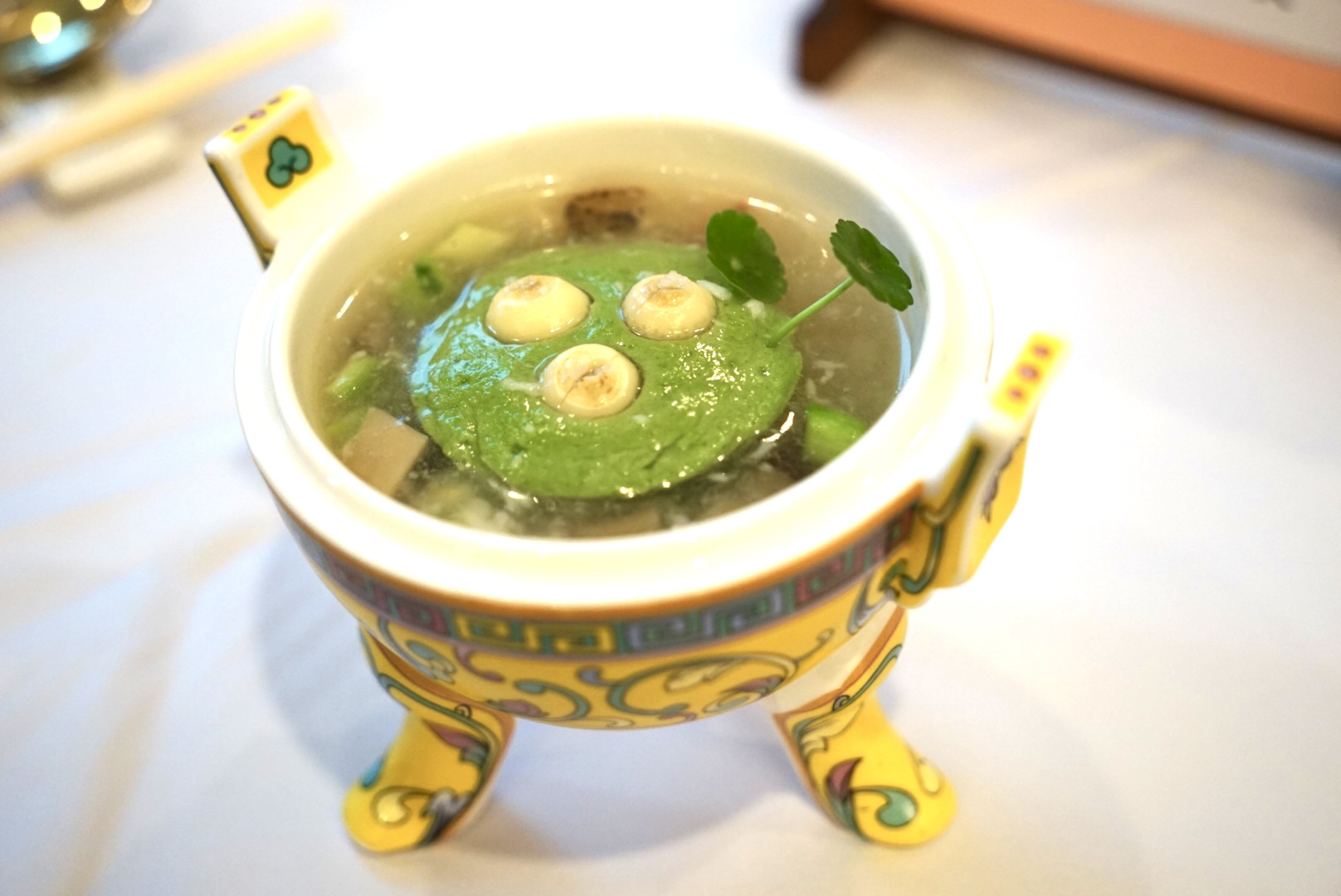 不时不食是岭南人的食俗,红棉华宴开篇以“四式妙前菜”带出,用春菌夏果秋菜冬瓜与民风习俗、花卉建筑为构图,四款“春夏秋冬”意境摆设的冷拼,体现出粤菜宴席的隆重与技艺。全媒体记者见到,春主题的摆盘中以花卉与虾表达了广州春暖花开、河鲜当造的景象,夏主题则以食物塑出小桥流水荷叶碧绿的荔湾湖景致。据介绍,菜式原料选择上与广式烧卤有机融合,把单一产品进行组合。