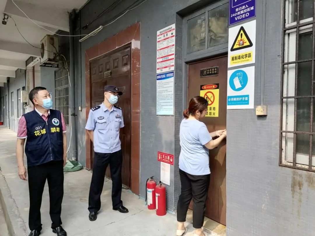 近日,花城街禁毒委组织花城街禁毒办、花城街应急办、花城派出所、新东派出所等部门前往辖区内几家易制毒化学品企业开展专项检查。