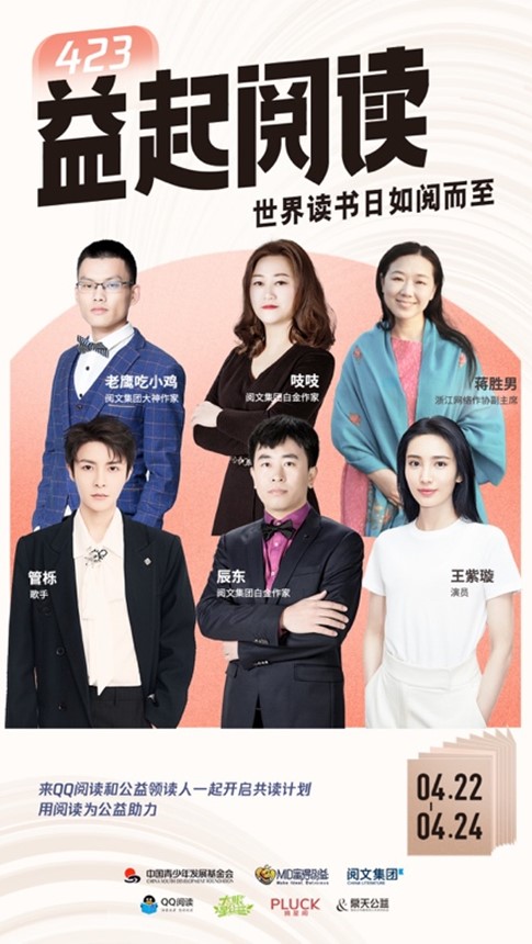 今天是“世界读书日”,为倡导读好书、形成良好的文化氛围、助力公益事业发展,QQ阅读携手中国青少年发展基金会等共同发起了“益起阅读” 活动。此次“益起阅读”活动邀请到了阅文集团白金作家辰东、白金作家吱吱、作家老鹰吃小鸡、歌手管栎、演员王紫璇、作家蒋胜男共同参与,大家以公益领读人的身份分享自己的读书角并发起共读挑战。