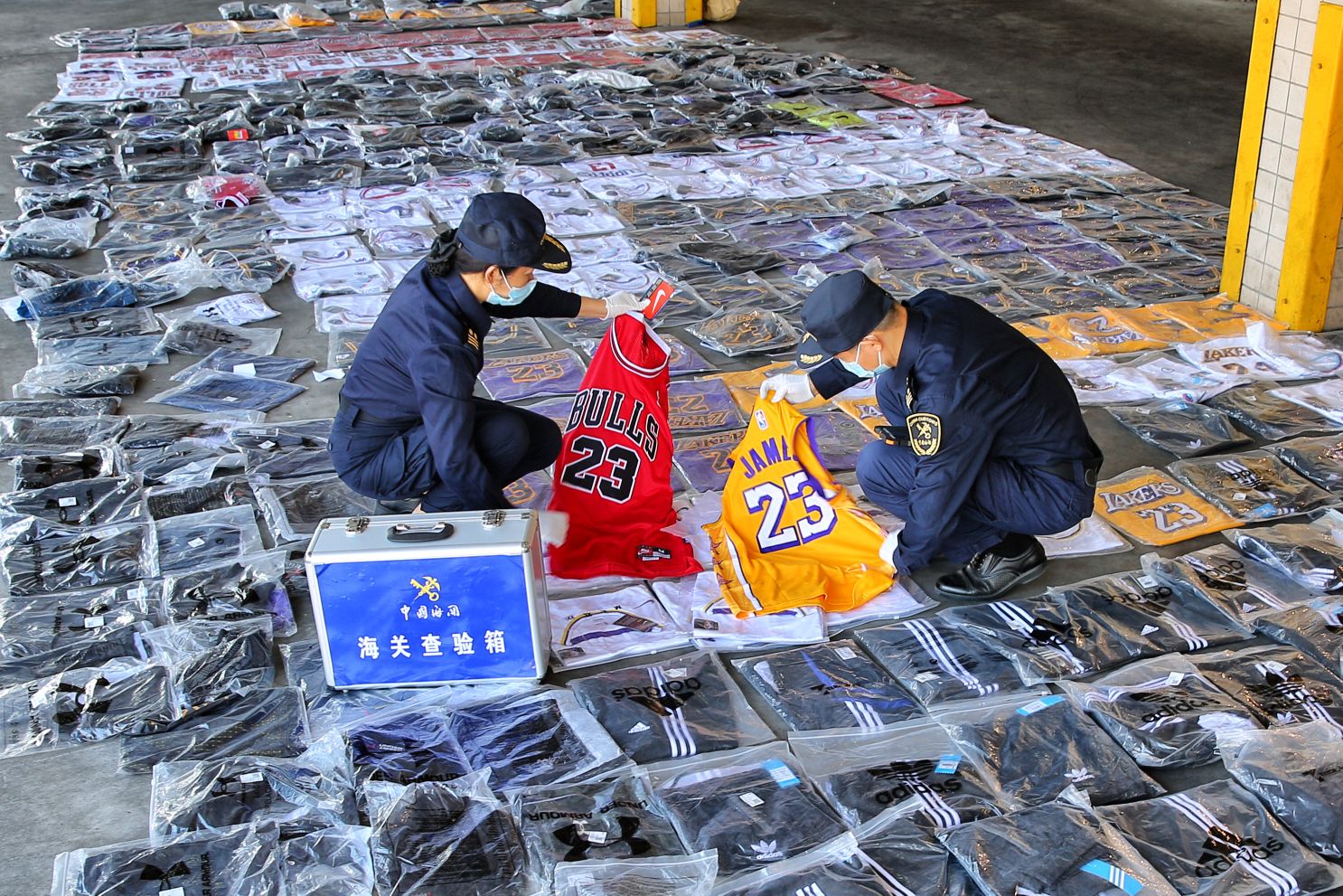案例九:佛山海关驻顺德办事处“粤港澳海关保护知识产权联合执法行动”查办市场采购侵权案。2020年11月,顺德办事处在申报出口澳门的市场采购货物中查获夹藏的侵犯商标权篮球衣、运动衣裤和运动包517件。该案是海关加强粤港澳大湾区海关合作、规范市场采购贸易业态健康发展的积极探索和实践成果。