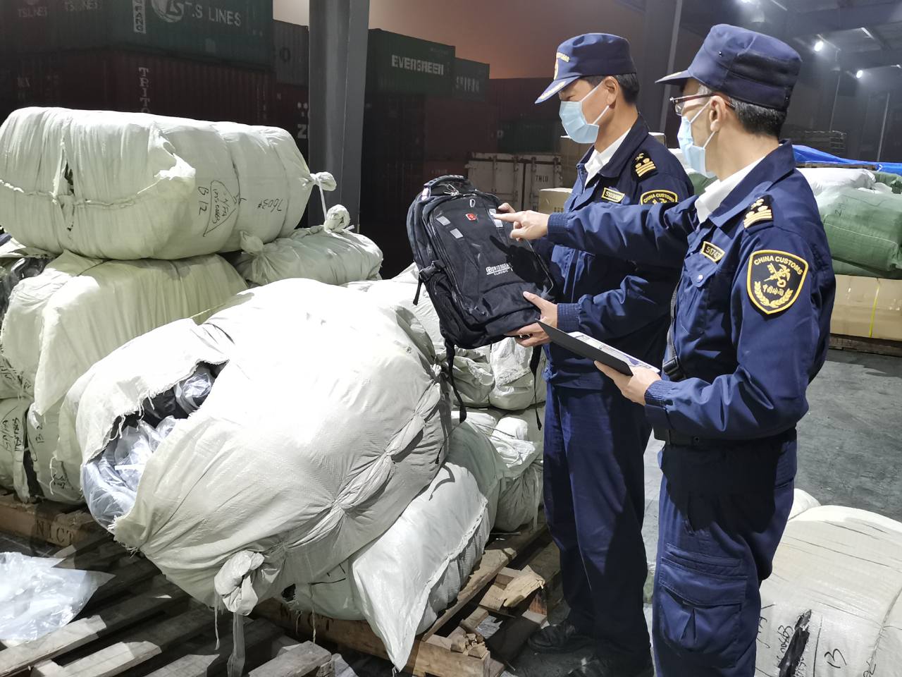 广州海关所属佛山海关驻南海办事处查获涉嫌侵犯著作权背包1825个
