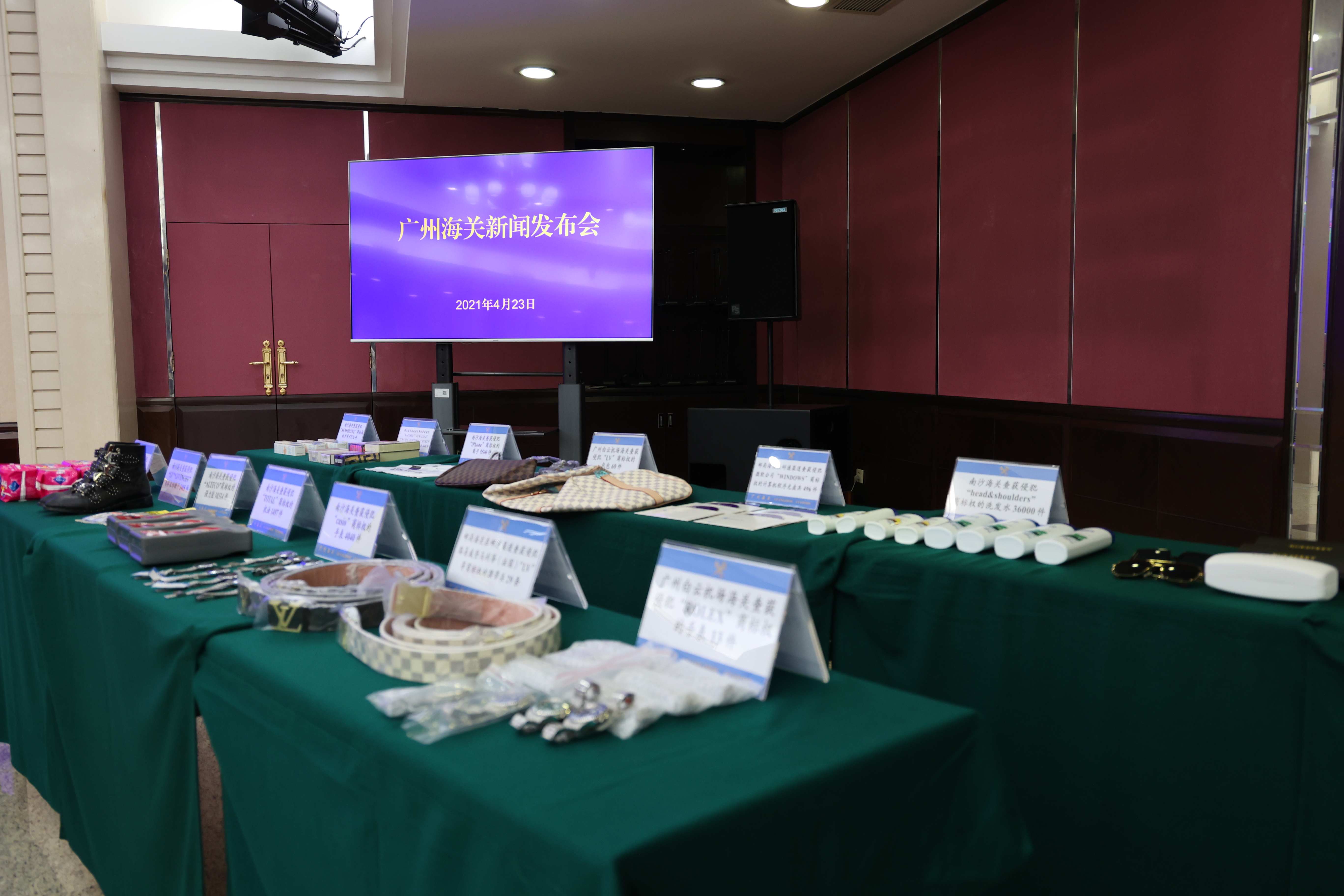 4月23日,广州海关举行知识产权保护专题新闻发布会。现场展示广州海关近期查获的部分侵权商品