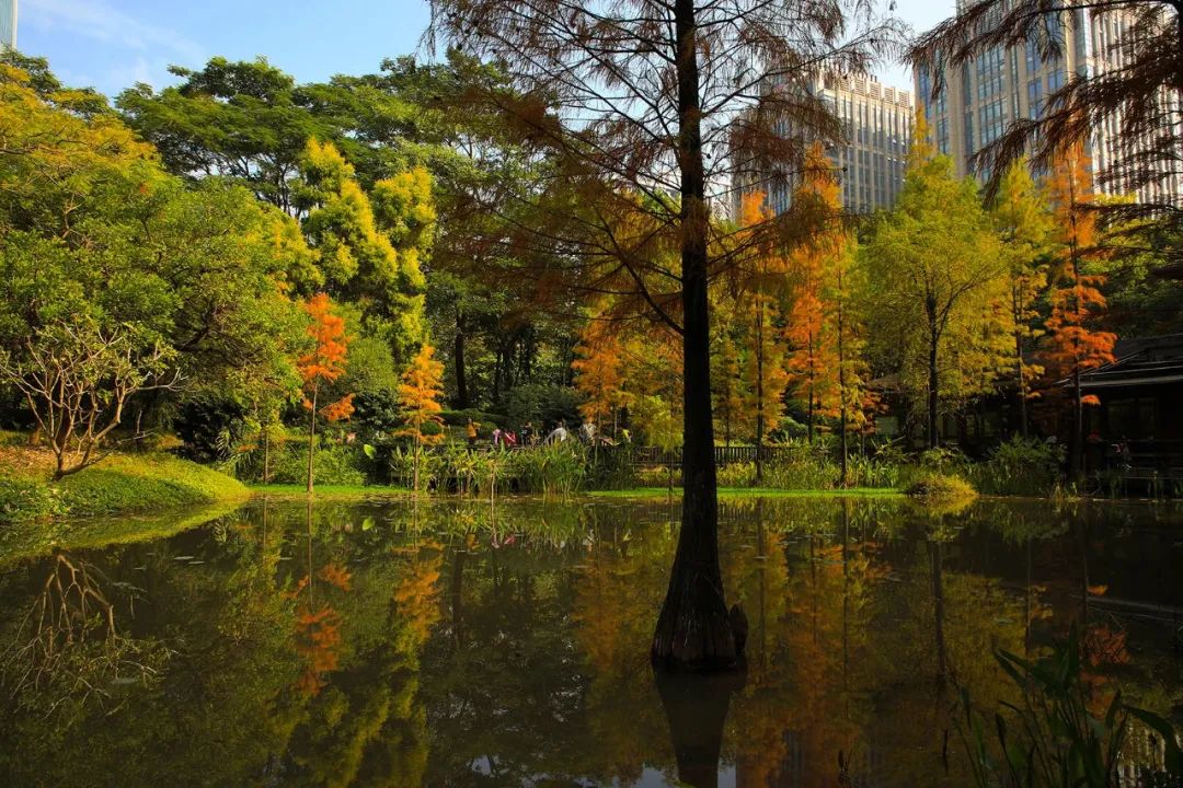 图/@广州印象珠江公园主要划分为风景林区、荫生生植物区、桂花园、木兰园、棕榈园、湖滨区等六个主要景区。