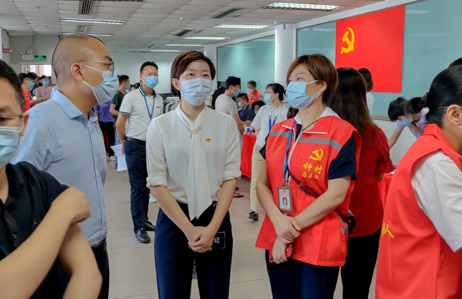 钟村街党工委党建专职副书记黄伟彬表示,自从新冠疫苗大规模接种以来,钟村街坚持党建引领疫苗接种工作,充分了解到企业和员工在疫苗接种方面的困难后,钟村街结合党史学习教育,积极响应为群众办实事“双微”行动号召,将疫苗接种送进工业园,既方便了企业和员工,又有利于构建全民防疫屏障。