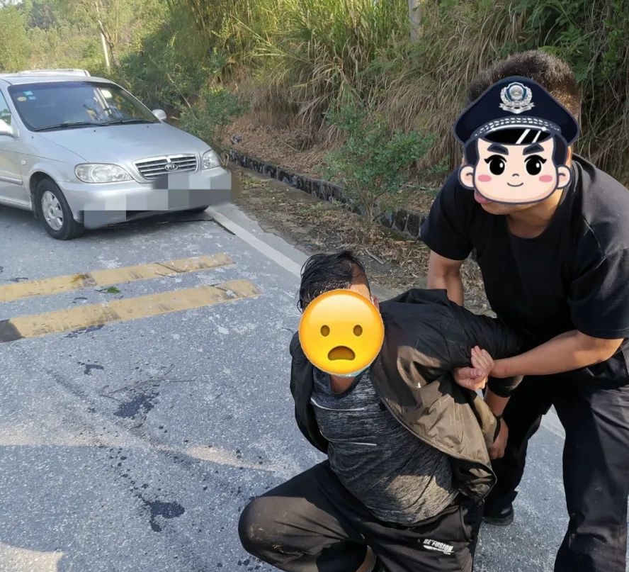 4月21日,收网时机成熟,专案组民警在佛冈高岗镇高速收费站对盗窃柴油犯罪嫌疑人实施抓捕。抓捕过程中,犯罪嫌疑人为逃避打击,驾驶车辆强行冲卡,慌不择路,疯狂逃窜,致车辆在路上发生侧翻。