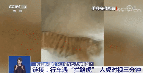 23日,在黑龙江密山市白鱼湾镇临湖村,一只老虎下山进村,扑伤了一名村民,袭击了一辆私家车。在连挨四枪麻醉针后,才在当晚9点左右被完全控制。猛虎下山为何会袭车伤人?与老虎狭路相逢,如何才能保命?