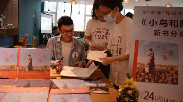 4月24日,中信出版社最新原创绘本《小鸟和雕像》的新书发布会在广州举行。作者大吴与现场观众一起分享了《小鸟和雕像》的故事和背后的创作历程。