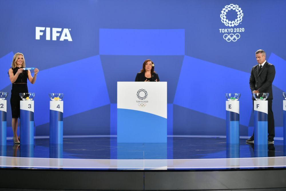 4月21日,嘉宾在抽签仪式上。当日,东京奥运会足球比赛抽签仪式在国际足联总部苏黎世举行,中国女足与巴西、荷兰和赞比亚队分在同组。新华社发(国际足联供图)