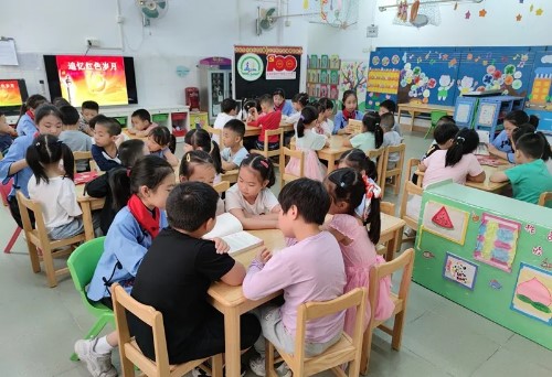 各小学也行动起来。为了让党史学习教育深入少先队员心中,晓港湾小学党支部紧扣庆祝建党100周年主线,创新学习方式,丰富教育载体。4月20日下午,晓港湾小学五(5)青蓝班牵手晓港湾幼儿园大三班开展了党史学习“小讲堂”活动。青蓝班的红领巾讲解员们向幼儿园小朋友讲述红色故事、唱响红歌、大手拉小手制作创意贺卡,让幼儿园小朋友加深对党史以及小学的了解。
