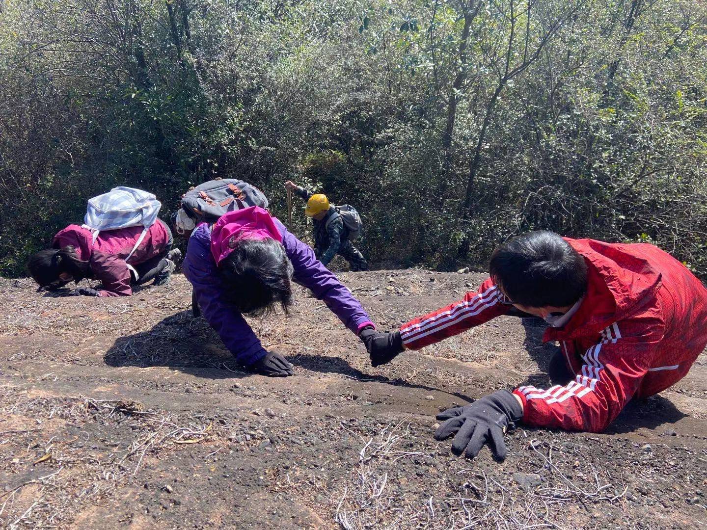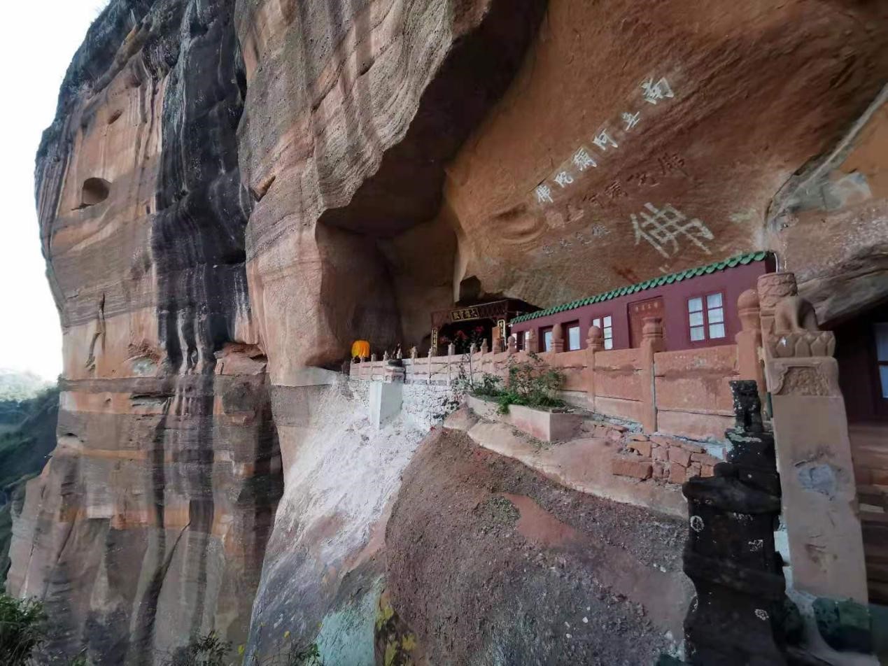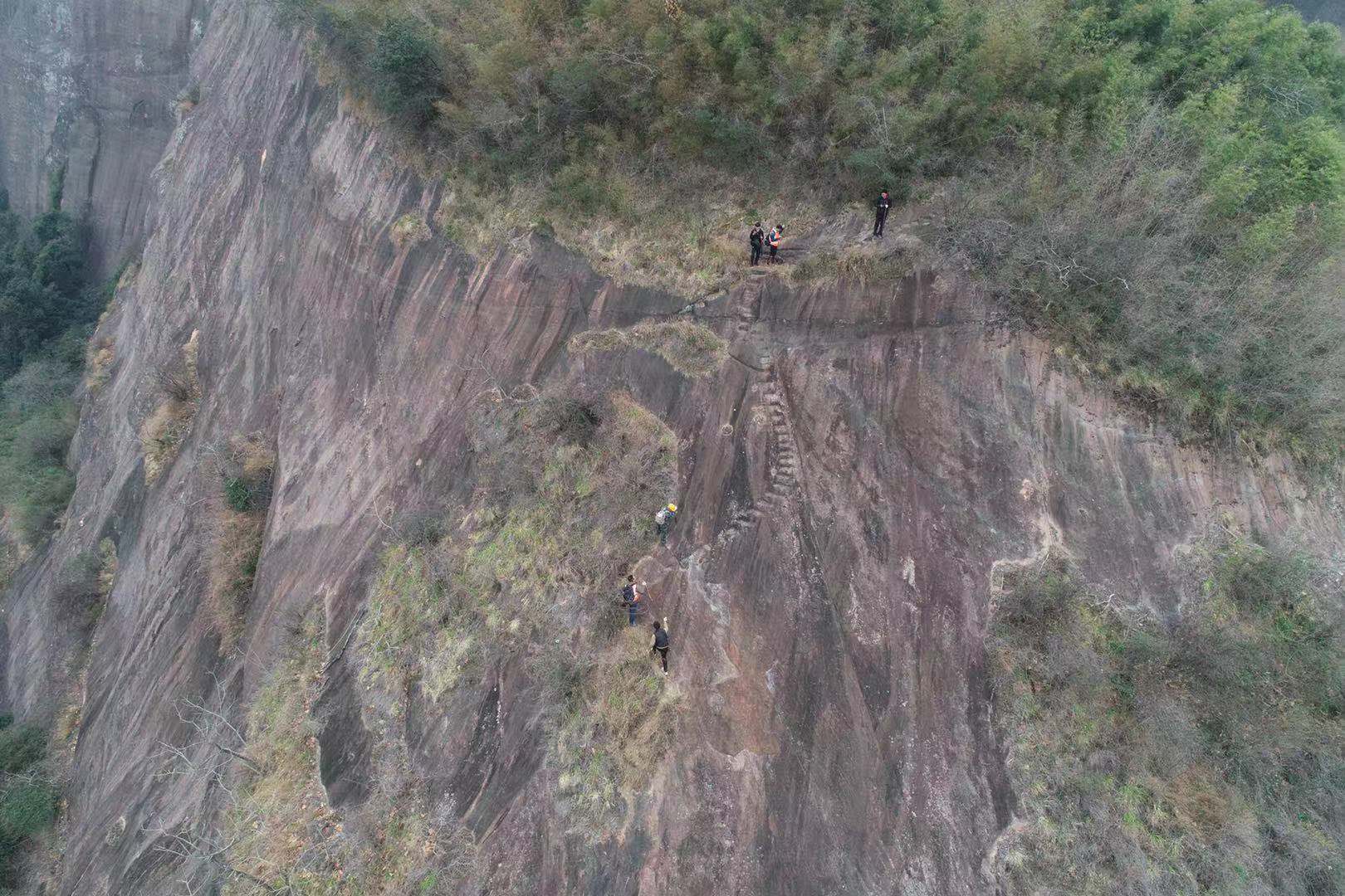 广东许多石窟寺,如仁化县丹霞山风景名胜区内的锦石岩寺、西竺岩寺、燕岩禅寺等,均开凿在典型的丹霞地貌红砂岩山体之中,山势险峻、人迹罕至,要靠镰刀披荆斩棘开出道路,许多地点需要借助绳索、梯子才能到达。对调查队员们来说是对体力和意志力的双重考验。前往部分山高路远的调查点时,调查队员们即使清晨出发、兼程赶路,仍然难以在天黑前返程,只能小心翼翼、亦步亦趋地摸黑下山。
