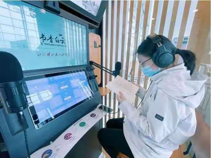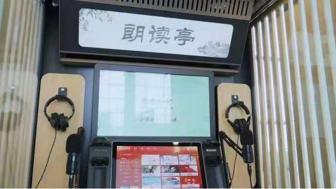 这个朗读亭内,有麦克风、耳机、触控机、触摸点播系统、空调、监控、座椅等多种装置,具备朗读、录制、发布等功能,朗读者可以选择自己喜欢的朗读文章和背景音乐,也可自由诵读,朗读完毕后,不仅可以试听自己的作品,还可以上传保存作品并分享至朋友圈,与朋友一起分享朗读心得。