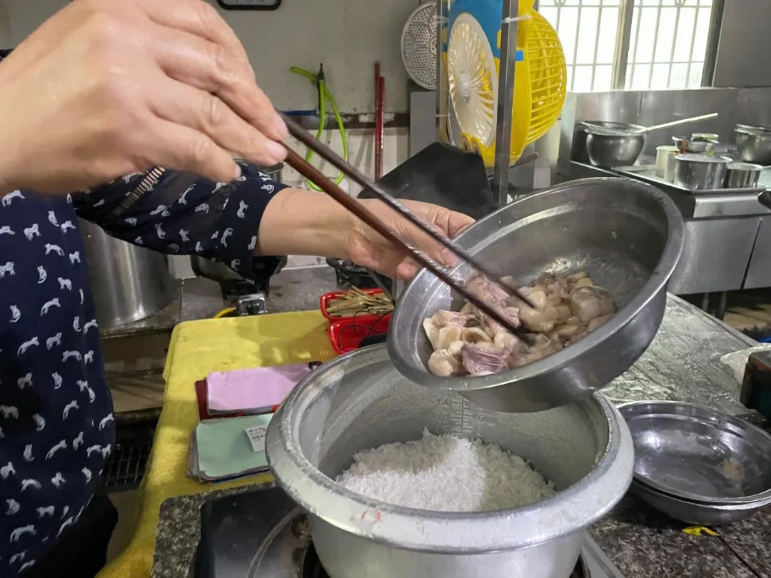 原料须纯正,选用增城农家走地鸡、朱村特产正宗丝苗米和纯正花生油;工艺须精准,精确掌握米和水的比例,严格控制煮饭过程中各阶段的火候,把握好放鸡肉焗饭的准点时间,调准各种调味料的分量;味道须纯香,米饭煮至收水后,放入鸡肉和米饭混在一起煮焗。