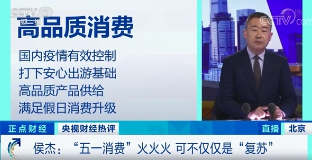 财经评论员侯杰:从先行数据看,不论是预计客流量的增长,机票、火车票的一票难求,还是景区实施限流、住宿价格上涨等,可以说,这次“五一”的假日消费,已不仅仅是复苏,而是回归正常的增长轨道,一个重要的标志就是:各项数据已超越疫情前2019年同期的水平。