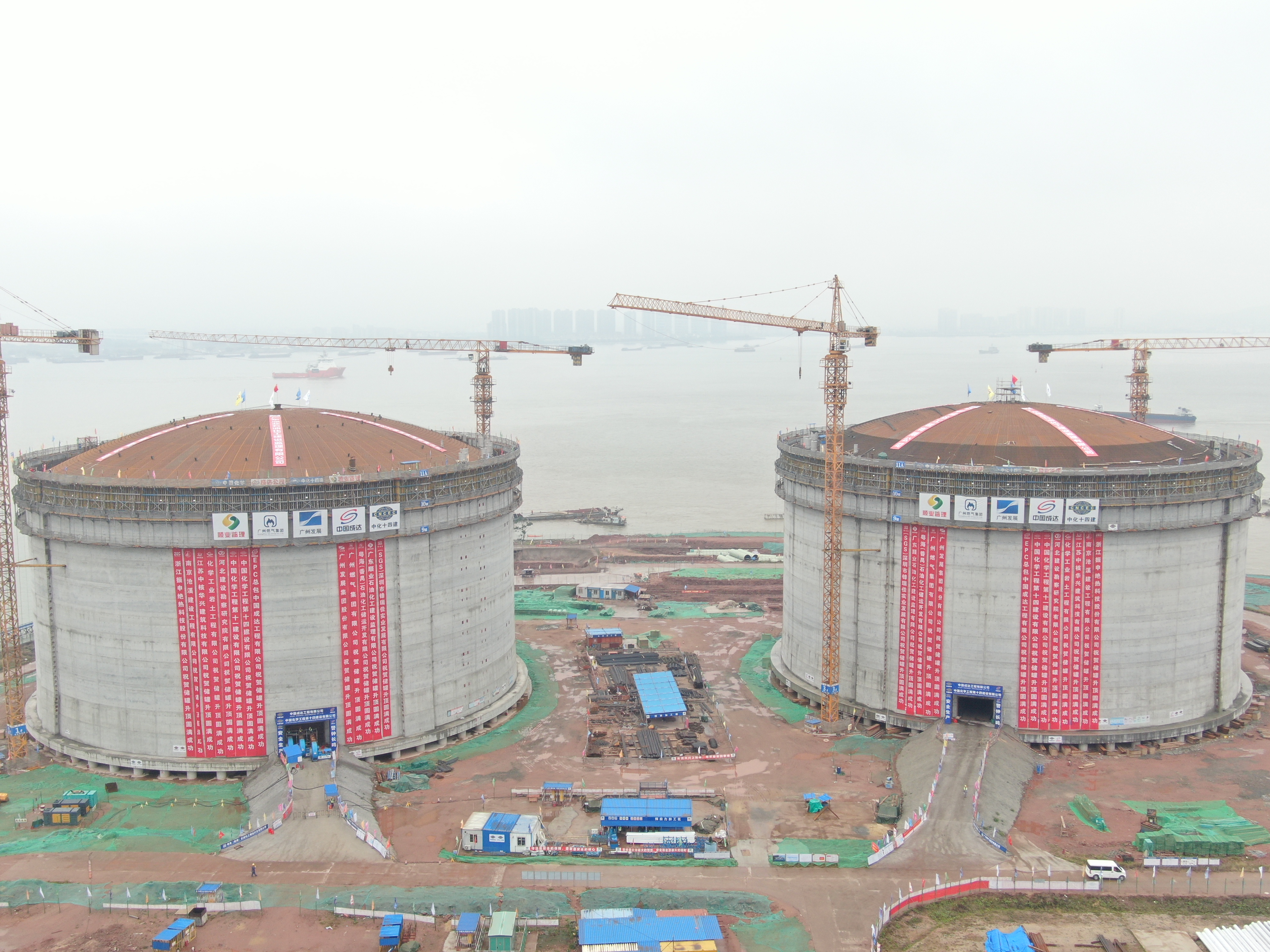 广州LNG应急调峰气源站项目分两期建设,其中一期储气库项目建设两座16万立方米LNG储罐、配套公用设备设施及改建一座可靠泊17.5万立方米LNG船舶的8万吨级接卸LNG专用码头。二期拟建设两座20万立方米LNG储罐。项目一期已于2019年9月30日开工,计划于2022年建成投产。此次储罐气顶升的圆满成功,为广州LNG应急调峰气源站实现2022年建成投产奠定了坚实的基础。