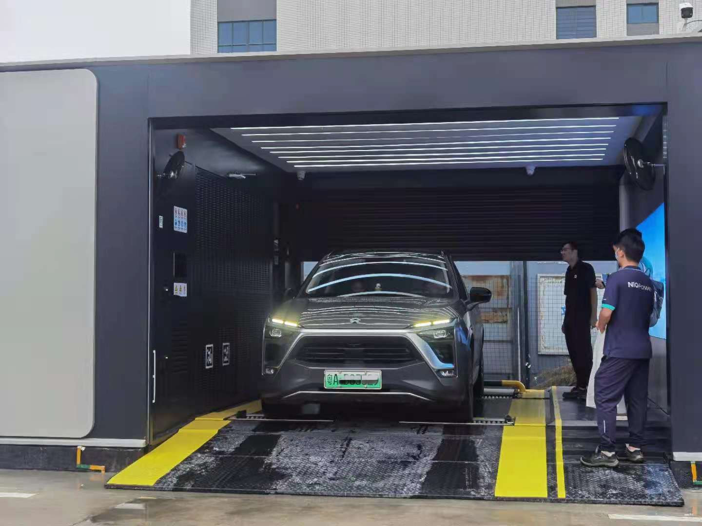 自主泊车、4分30秒即更换好电池,车辆重新“满电”出发……这样服务发生在蔚来的第二代换电站上。4月27日,广州首座蔚来第二代换电站“落户”广州番禺石碁市莲路的一个大型充电场,并正式开始为蔚来车主提供服务。