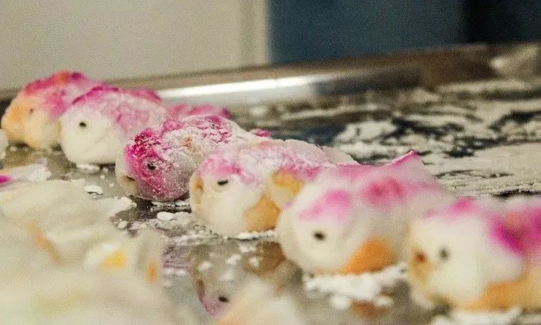 教学内容:水晶金鱼饺、橘子包、笑口枣的制作方法