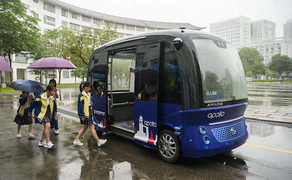 学生体验无人驾驶巴士。信息时报记者 陆明杰 摄