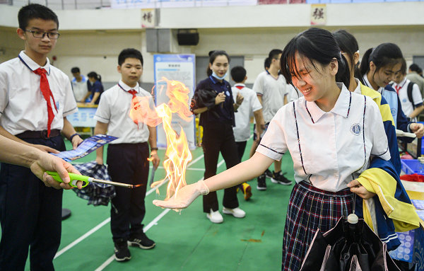 此外,当天广州市玉岩中学还举行了科技展,是该校“格致·汇智”科技嘉年华另一重磅活动。科技展上,中国科学院广州生物医药与健康研究院、中国科学院广州能源研究所亿航智能、百度公司、广州明珞汽车装备股份有限公司等20余家科技领域的企业和机构纷纷设展,展出最新的科技成果,并与学生互动。