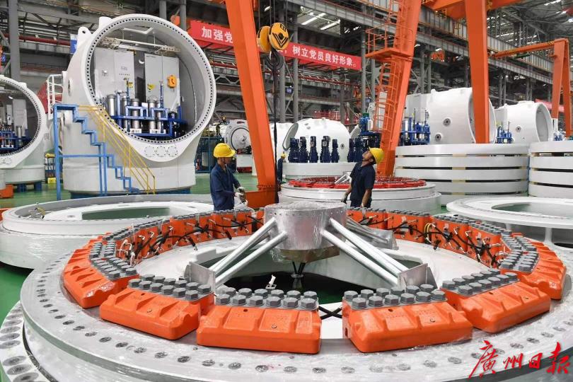 在基地内,记者见到了明阳智慧能源集团股份公司副总裁王冬冬。“很多外国专家认为在南海地区建设海上风力发电机是不可能的,南海地区的平均风速较低,为了增加发电效率,发电机的叶片要做的足够长足够大,但每年南海都有频繁的台风,越是大的风力发电机面对台风越容易损坏。”王冬冬说。为此,明阳智能开发了明阳MySE海上风力发电机,该种风力发电机拥有大兆瓦半直驱技术技术优势,环境适用性强,机体结构紧凑运输吊装成本低,可抗台风。