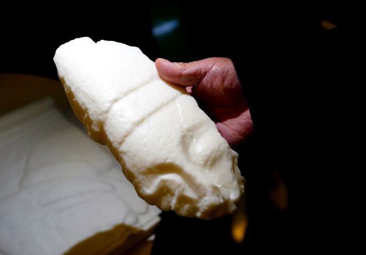 这是西安国家增材制造创新中心3D打印复制的浮雕碎块(4月7日摄)。新华社记者李安摄