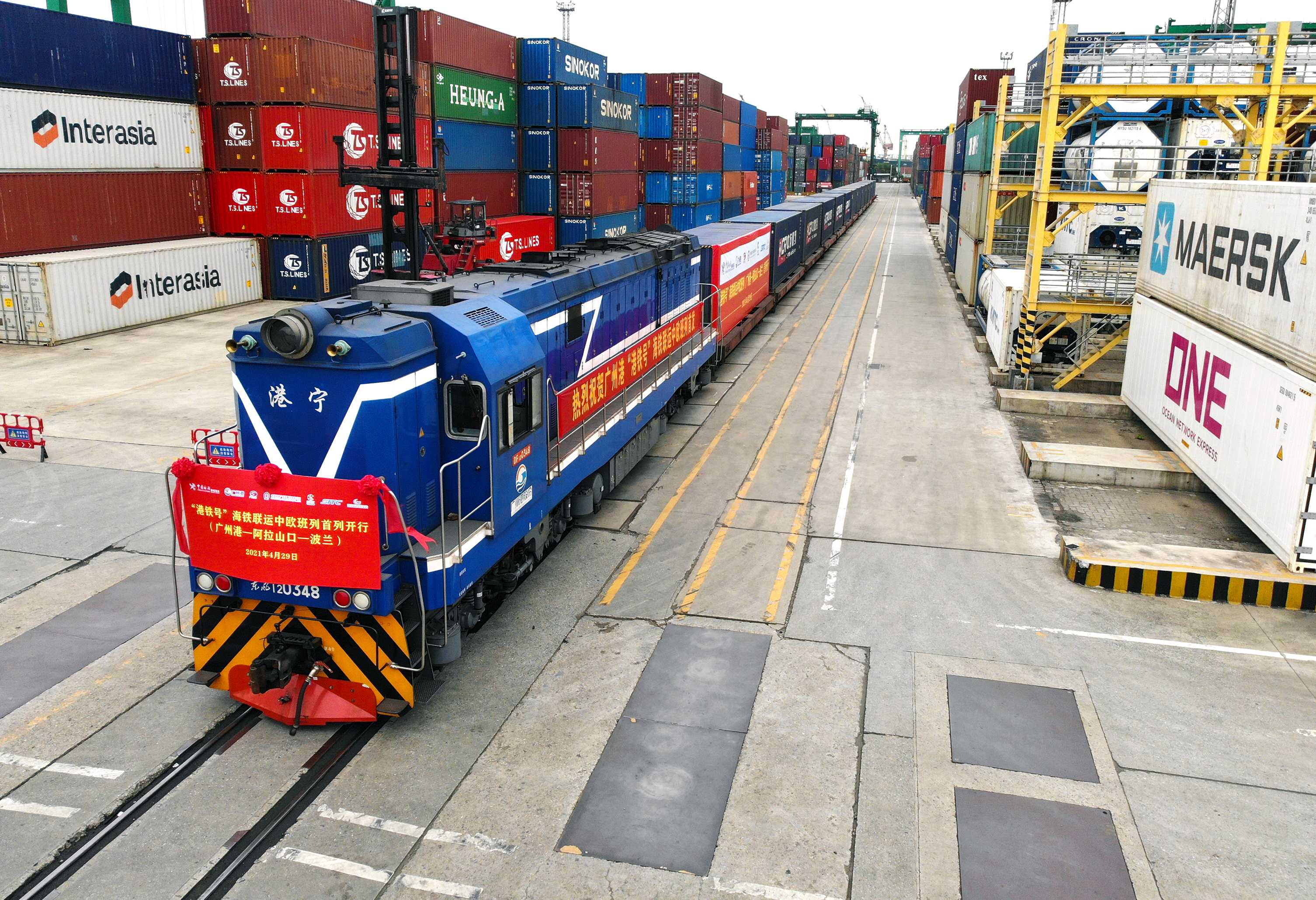 4月29日下午,伴随着长鸣的汽笛声,广州港 、广物集团、 广铁集团“港铁号”海铁联运中欧班列(广州港-阿拉山口-波兰)从广州港下属集司码头缓缓驶出,由阿拉山口出境,将于15天后抵达波兰最大的铁路转运港马拉舍维奇。这是广州港铁国际物流有限公司携手广物国际物流欧班列平台合作开行的首趟出口班列,标志着广州港海铁联运首列中欧班列成功运作。