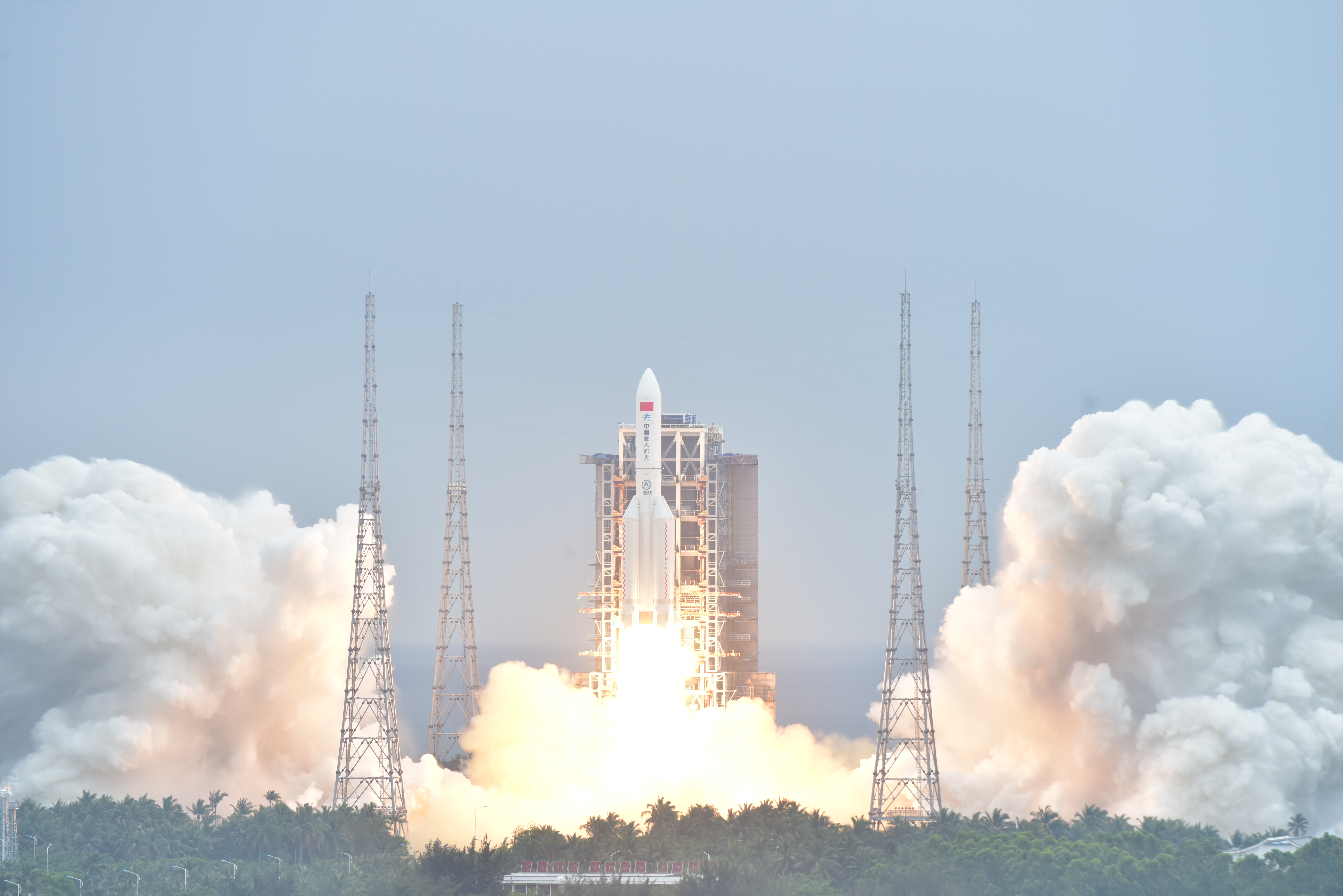 为我国空间站任务“量身定做”的长征五号 B 运载火箭,是我国目前近地轨道运载能力最大的新一代运载火箭,具备近地轨道 25 吨的运载能力。其“大力出奇迹”的关键所在,就是由航天科技集团八院 805 所抓总研制的 4 个 3.35 米助推器。据长征五号运载火箭副总指挥兼副总设计师鲍国苗昨天向记者介绍说,4 个助推器为长五 B 火箭提供了 90%以上的起飞推力,并创造了多个“国内第一”。