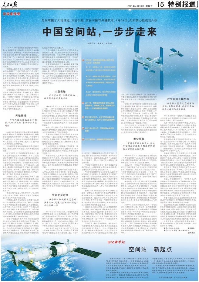 能够徜徉太空,靠的是攻克一道道技术难关,靠的是好奇心与实干。空间站是中国载人航天工程“三步走”发展战略的第三步,看似水到渠成的每一步,背后则是一个个梦想与智慧、追求与勇气交织的故事。扎扎实实的每一步,背后是不甘人后、自立自强的进取精神。人们感叹前辈们的远见,感佩创新者的精神。