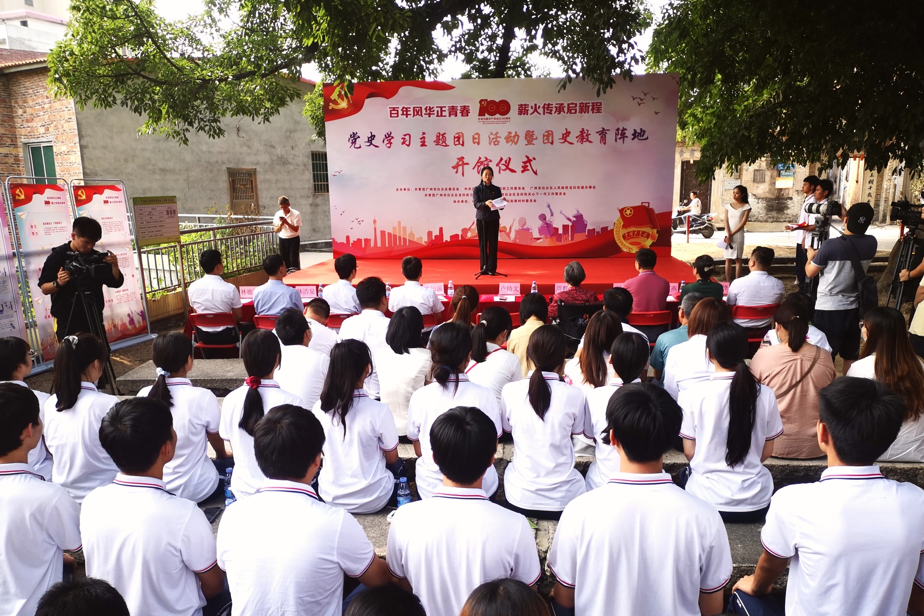 4月30日下午,在解放战争时期禺北地区第一个新民主主义团支部(共青团前身)的诞生地白云区南村,广州市首个区级团史教育阵地——云青学舍正式揭牌开馆,并同步举行“百年风华正青春 薪火传承启新程”党史学习主题团日活动。南村团支部早期团员周群坚等人,及村(社区)居民群众、青年师生代表等80余人共同见证并参与活动。