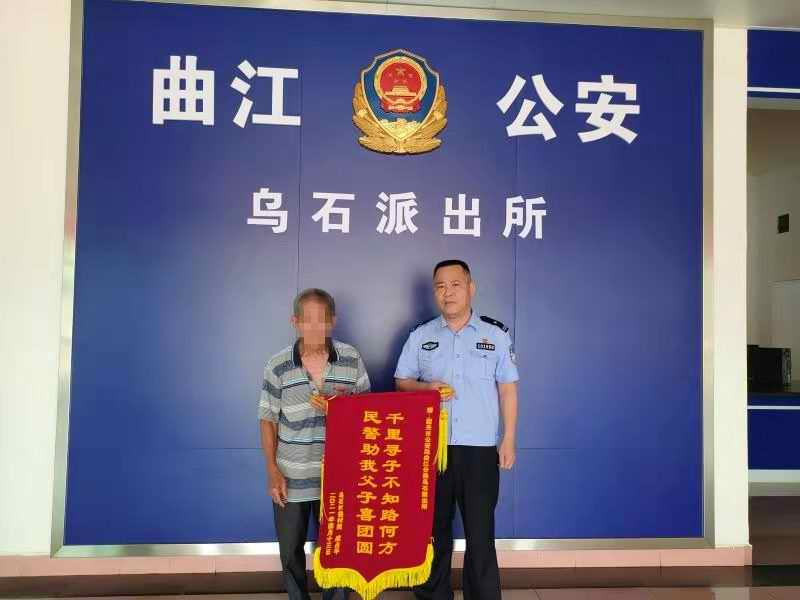 原本以为自己要抱憾终生的成某夫妇激动不已,向民警连连道谢。他更是专程来到乌石派出所,为民警送上一面写有“千里寻子不知路何方,民警助我父子喜团圆”的锦旗。